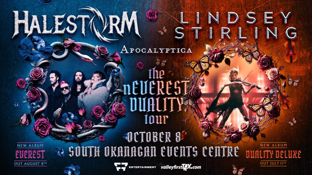 The South Okanagan Events Centre is thrilled to announce that the groundbreaking nEverest Duality Tour featuring rock powerhouse Halestorm, virtuoso violinist Lindsey Stirling, and Finnish cello metal pioneers Apocalyptica will be making a stop in Penticton on October 8, 2025.