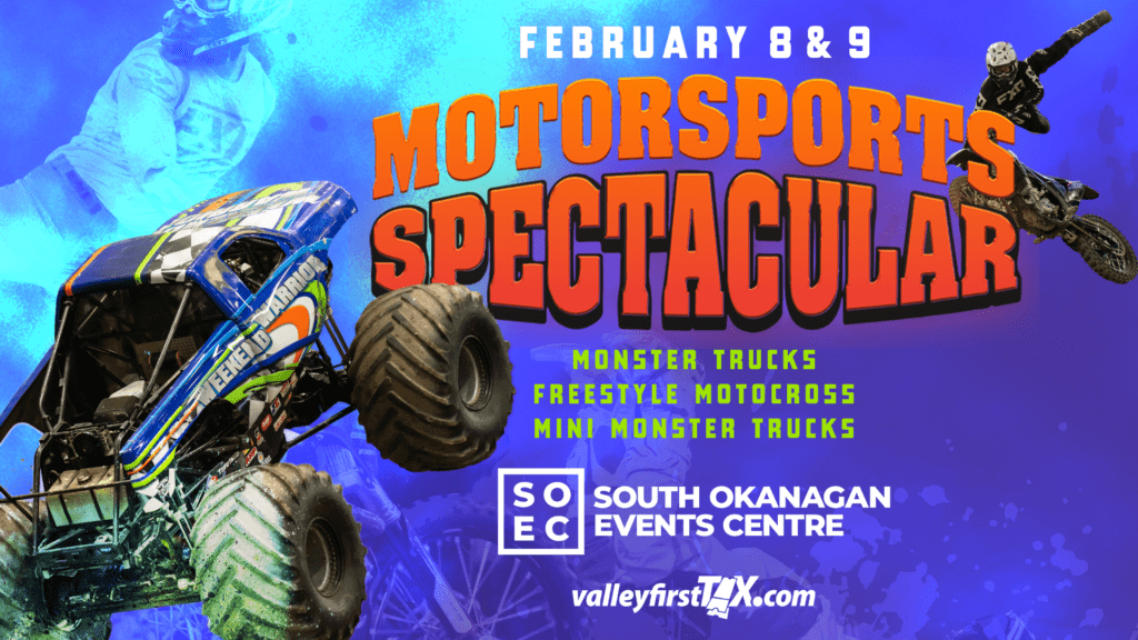 Penticton, BC | Get ready to feel the adrenaline rush and hear the engines roar as the South Okanagan Event Centre hosts the exhilarating Motorsport Spectacular event on February 8th and 9th! This high-octane event promises a thrilling experience for motorsport enthusiasts of all ages, featuring an electrifying lineup of Monster Trucks, Mini Monster Trucks, and jaw-dropping Freestyle Motocross.