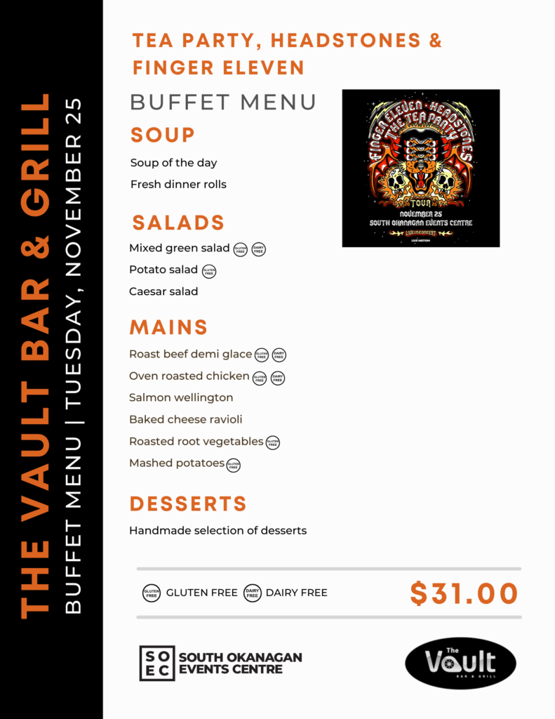 Enjoy early access to the venue, beat the rush for parking, and enjoy a delicious dinner and dessert before the show.